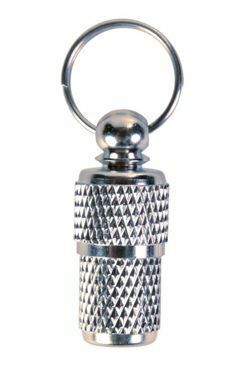 Praktický malý kovový adresář pro připnutí na obojek - do adresáře se nedostane voda a tak je adresa s kontaktními údaji v bezpečí.