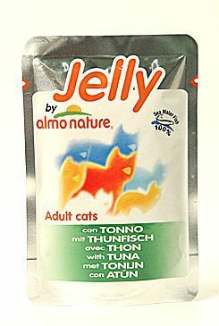 Almo Cat Jelly kapsa kočka tuňák - je kompletní mokré krmivo pro dospělé kočky z vysoce kvalitních surovin bez konzervačních látek a dochucovadel. Obsažená želatina je přírodním prostředkem, jež napomáhá k vylučování chlupů, které kočka spolyká při každodenní očistě. Díky želatině, která přispívá k udržení hydratace kočky po delší dobu, je Jelly cat je ideální v letním období.