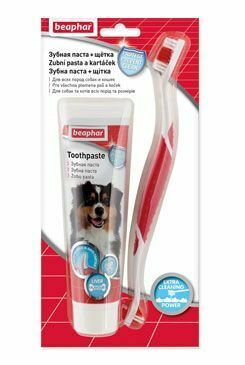 Zubní pasta s enzymy a kartáček Beaphar slouží pro ústní hygienu psů a koček. Pravidelná péče o chrup pomáhá předcházet problémům se zuby a dásněmi a následnému nákladnému léčení. Počáteční zubní plak je třeba odstranit, aby nedošlo k tvorbě zubního kamene a nepříjemnému zápachu z tlamy zvířete. Ústní hygiena by měla patřit k běžné péči o psa či kočku.