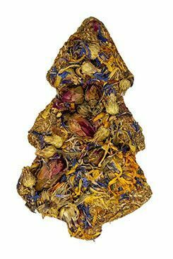 Bylinková pochoutka pro hlodavce ve vánočním designu. Bezobilný vánoční stromeček je z přírodních sušených ingrediencí jako je měsíček lékařský, chrpa a růže, které nejen krásně voní, ale také výborně chutnají.