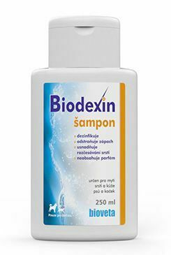 Šampon určený pro mytí srsti a kůže u psů a koček v případě potřeby antiseptického, čistícího a desodoračního účinku