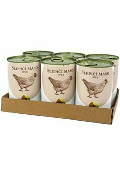 Poctivá konzerva s výjimečně vysokým obsahem dietního slepičího masa – 70 %.