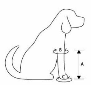 | Velikost | Výška v cm (A) | Horní obvod v cm (B) | Obvod chodidla v cm (C) |