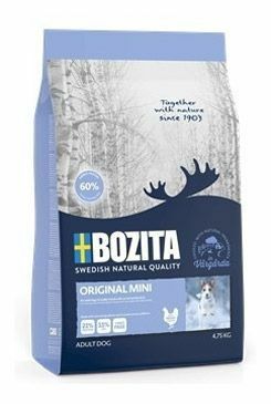 Složení krmiva Bozita Original Mini odpovídá potřebám dospělých psů malých plemen s běžnou aktivitou. Krmivo obsahuje všechny důležité látky a živiny, které dospělý pes potřebuje. Čerstvé kuřecí maso ze švédských chovů má intenzivní chuť a je zdrojem cenných bílkovin. FOS obsahují přírodní balastní látky, které přispívají k rovnováze střevní mikroflóry a usnadňují vstřebávání živin. Tvar a velikost granulí je přizpůsobena velikosti čelistí malých psů.