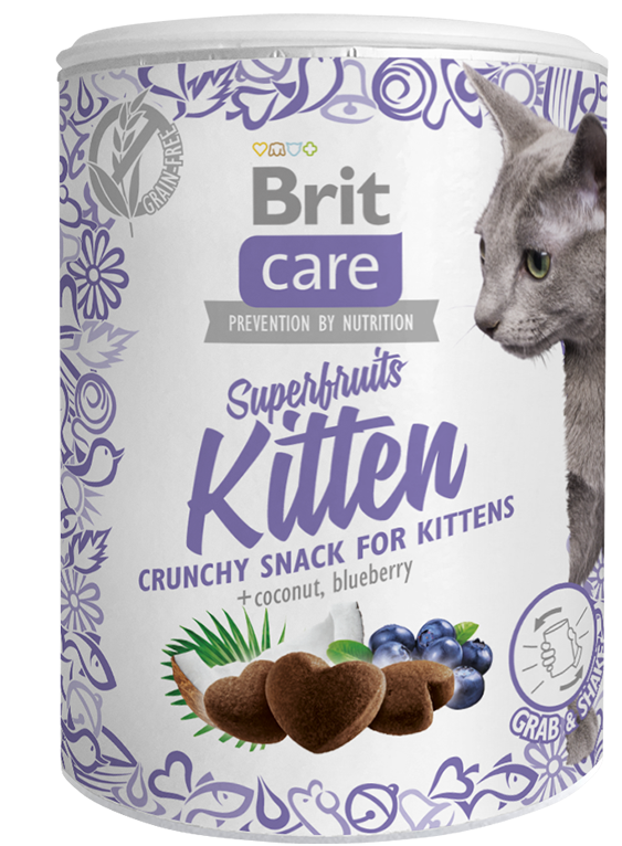 Doplňkové krmivo pro koťata od 6 týdnů věku. Křupavý kuřecí pamlsek se „SUPERFRUITS“ – s kokosem a borůvkou. Chrastící křupavé pamlsky kotě přilákají a strhnou ke společné zábavě - bez obsahu obilovin.