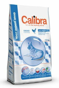 Calibra Adult Medium Breed je kompletní, velmi chutné a lehce stravitelné krmivo pro dospělé psy středních plemen, kteří ukončili fázi růstu. Jedná se o univerzální krmení dieteticky pečlivě vyvážené a nutričně plnohodnotné, které je vhodné k dlouhodobé výživě. Receptura, stejně jako všechny ostatní produkty řady, neobsahuje přídavná barviva, chemické konzervační látky ani geneticky modifikované suroviny.