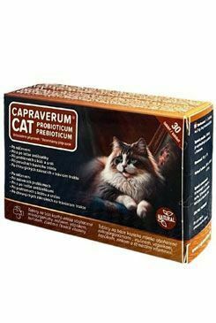 CAPRAVERUM CAT probioticum-prebioticum jsou tablety na bázi kozího mléka obohacené o všechny nejdůležitější vitamíny a užitečné mikroorganismy (Enterococcus faecium), inulin. Inulín je rozpustná fermentovatelná vláknina, která plní s kozím mlékem prebiotickou funkci a podporuje růst žádoucí střevní mikroflóry. Tablety mají optimální poměr kostitvorných minerálních látek - vápníku, fosforu, hořčíku a zinku, obsahují všechny esenciální aminokyseliny a lehko stravitelné tuky. Zlepšují stravitelnost živin z krmné dávky, působí příznivě na činnost trávicího traktu , jater a slinivky. Komplex mikroorganismů, vitamínů a zinku chrání trávicí trakt a kůži, podílí se na obraně organismu před infekcemi. Pomáhá obnovit zdravou střevní mikroflóru při léčbě antibiotiky a po jejím ukončení. Přispívá k prevenci a léčbě střevních onemocnění.