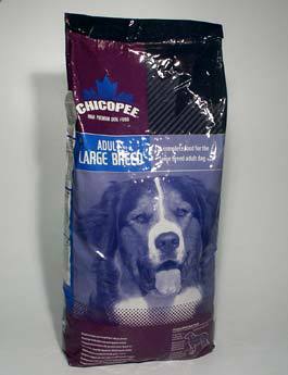Kompletní krmivo, které je svým tvarem granulí a nutričními hodnotami speciálně uzpůsobeno pro psy velkých a obřích plemen. Poskytuje optimální výživu a svým obsahem glukosaminu a chondroitinu napomáhá předcházet kloubním onemocněním, na která jsou velká a obří plemena psů obzvlášť náchylná. Tyto komponenty přispívají k úlevě postižených kloubů a zabraňují jejich degeneraci. Obsažené nenasycené mastné kyseliny Omega 3 a Omega 6 zajišťují hebkou, lesklou srst a zdravou kůži. Chicopee Adult Large Breed celkově splňuje nutriční požadavky a zajišťuje špičkovou fyzickou kondici. Vynikající kuřecí chuť si zamiluje i Váš pes!