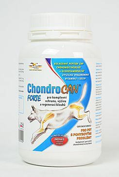 Kolagenní doplňkové krmivo s chondroitin a glukosaminsulfátem, kyselinou hyaluronovou - komplexní perorální chondronutraceutikum pro podporu reparativních procesů v kloubním systému při léčbě chorob pohybového aparátu psů.