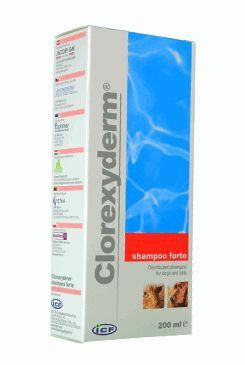 Psa nebo kočku důkladně navlhčete vlažnou vodou. Aplikujte šampon a zvláště pečlivě masírujte postižené oblasti (obvykle kůže mezi drápy, okolí pysků, břicho, krk, podpaží, slabiny, uši). Ujistěte se, že jste použili dostatek šamponu pro vytvoření bohaté pěny. Bohatá pěna odstraňuje mikroorganismy a mrtvé buňky ze srsti zvířete, a tím zbavuje kvasinky a bakterie jejich zdroje potravy. Souběžně se eliminuje zápach, který bývá obvykle spojen s kvasinkovými infekcemi. Nechte šampon působit 5 – 7 minut, pak ho důkladně opláchněte, abyste odstranili všechny stopy lupů a/nebo mazu. Ošetření by mělo být opakováno každé dva dny po dobu 2 – 4 týdnů. Mezitím by mělo být zvíře každých 12 - 24 hodin ošetřováno přípravkem Clorexyderm® Roztok. Vzhledem k tomu, že u dermatitid tohoto typu dochází k častým recidivám, je vhodné používat Clorexyderm® Forte preventivně každé dva týdny.