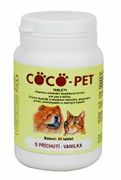 Coco Pet s vanilkovou příchutí je doplňkové krmivo pro psy a kočky s obsahem vitamínů, stopových prvků, aminokyselin a mastných kyselin.