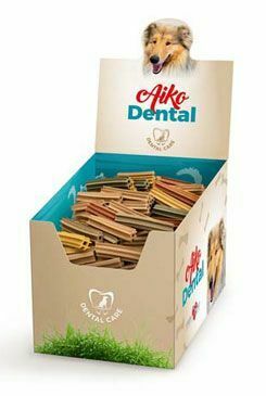 AIKO Dental Stix 7,5cm. MIX příchutí: MOŘSKÉ ŘASY (světle zelená)/MED - FENYKL (žlutá) /DÝNĚ-JAM (oranžová)/MENTOL (tmavě zelená) / VÁPNÍK + MLÉKO (přírodní).