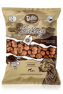 Doplňkové krmivo pro psy s kachním masem.