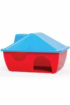 Plastový domek pro hlodavce s tvarovanou střechou.