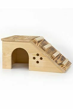 Netradiční tvar domečku ALDER nabízí morčatům zajímavou atrakci, kdy po šikmé části střechy mohou jako po rampě vylézt na vodorovnou část střechy.