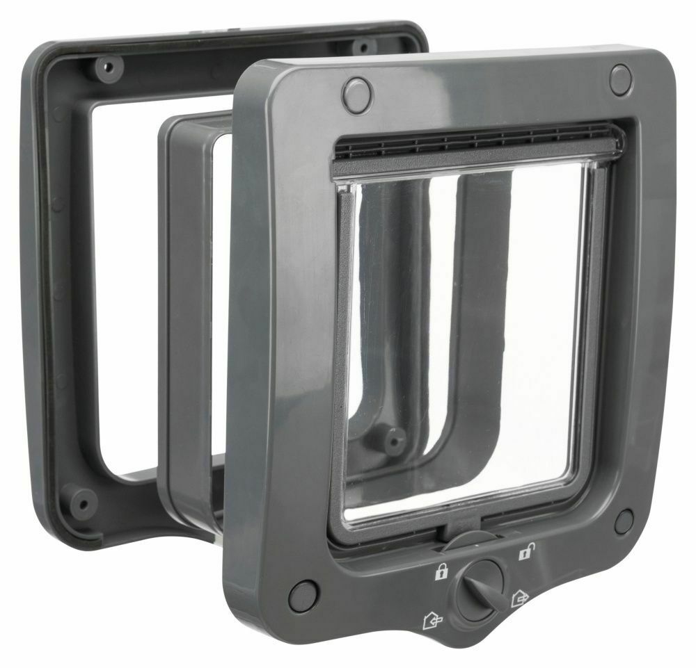Tyto průchozí dvířka, které umožní Vaší kočičce svobodný pohyb i kolem domu maji 4 funkce a to možnost kompletního uzavření a otevření průchodu a možnosti pouze odchod nebo pouze příchod. Jsou z plastu se speciálním těsněním a magnetickým uzávěrem, který doplňuje pro vyšší ochranu bezpečnostní zámek. Materiál je odolný vůči povětrnostním vlivům. Tato kočičí dvířka jsou plastová s průhlednou klapkou a tichým chodem s 360 ° obvodovým těsněním (TPR) a magnetickou sponou s pohodlným otočným uzávěrem/zámkem