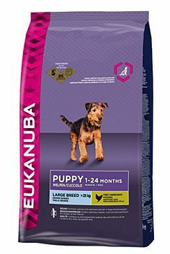 Štěňata velkých a obřích plemen rostou velice rychle a mají proto velice specifické výživové potřeby. Toto krmivo společnosti Eukanuba obsahuje uzpůsobené množství proteinů, vápníku a energie. Poskytuje všechny důležité vitamíny a minerály a podporuje vyrovnaný růst svalů a kostí štěňat velkých a obřích plemen. Obsahuje přísady vysoké kvality a velké množství živočišných proteinů, z nichž kuřecí maso představuje hlavní zdroj. NEDOPORUČUJE SE podávat jako krmivo fenám v těhotenství a laktaci v důsledku speciálně uzpůsobeného obsahu minerálů.