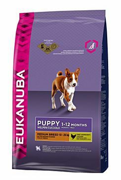 Štěňata středně velkých plemen mají vlastní výživové nároky. Tato strava Eukanuba dodává optimální množství proteinů, tuku a karbohydrátů na pokrytí těchto nároků. Poskytuje všechny důležité vitamíny a minerály nezbytné pro optimální růst. Obsahuje přísady vysoké kvality a velké množství živočišných proteinů, z nichž kuřecí maso představuje hlavní zdroj.