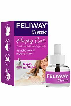 - Napodobuje kočičí tvářový feromon, který zabezpečuje kočce stav pohody a klidu