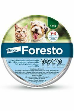 Pro kočky a menší psy do hmotnosti 8 kg použijte Foresto obojek o délce 38 cm.