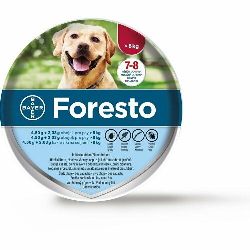 Pro psy o hmotnosti nad 8 kg použijte Foresto obojek o délce 70 cm.