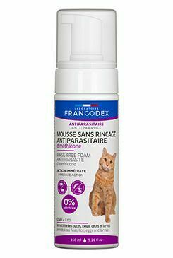 Bezoplachová pěna pro kočky s Dimethiconem proti parazitům.