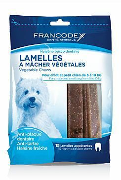 Doplňkové krmivo pro psy o hmotnosti 5 - 10kg. Žvýkací plátky jsou velmi lehce stravitelné. Jejich tvar a textura usnadňuje žvýkání a zlepšuje čištění zubů. Mechanické abrazivní působení pomáhá odstranit povlak na zubech a omezuje tvorbu zubního kamene. Podporuje svěží dech.