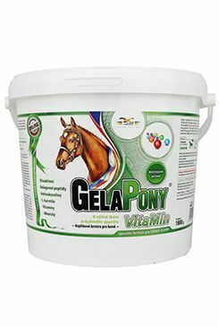 Komplexní doplňkové krmivo s obsahem kolagenu CHP, vitamínů a minerálů k dennímu obohacení krmné dávky všech kategorií koní Gelapony VitaMín je komplexní vitaminominerální doplněk s kolagenem CHP. Přípravek je určen k dennímu doplnění vitamínů a minerálních látek do krmné dávky koní. Současně zajišťuje příjem kolagenu CHP pro správný vývoj a regeneraci kloubů, kostí a šlach.