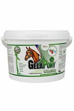 Komplexní doplňkové krmivo s obsahem kolagenu CHP, vitamínů a minerálů k dennímu obohacení krmné dávky všech kategorií koní Gelapony VitaMín je komplexní vitaminominerální doplněk s kolagenem CHP. Přípravek je určen k dennímu doplnění vitamínů a minerálních látek do krmné dávky koní. Současně zajišťuje příjem kolagenu CHP pro správný vývoj a regeneraci kloubů, kostí a šlach.