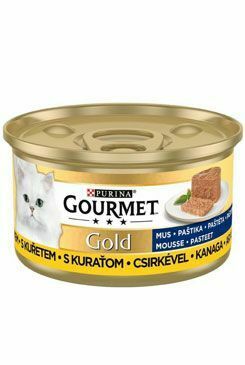 Kompletní, superprémiové krmivo Gourmet Gold konz. pro dospělé kočky všech plemen, s obsahem kuřecího masa.