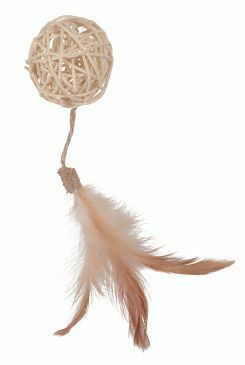 Hračka pro kočky, 100 % přírodního původu - rákos, jutové spoje, peří a švy z bavlny.