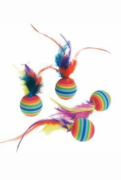 S touto hračkou se Vaše kočka rozhodně nudit nebude. Míček s barevnými peříčky ji dokonale zaměstná na dlouhé hodiny. Sada obshauje 4 míčky duhových barev.
