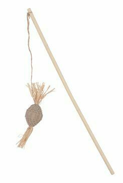 Ekologická hračka pro kočky-bambusová udice s kartonovým míčkem s kukuřičnými listy.