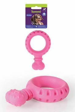 Gumová kousací hračka, vhodná zejména pro středně velké psy, s příjemně tvarovaným a vzorovaným povrchem, který při hře neklouže. Vhodná k tréninku aportu i přetahování.