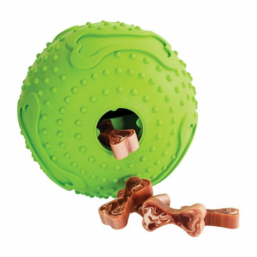 Míč s otvorem na krmivo je s integrovaným labyrintem. Podporuje zdravé trávení, protože pes dostává jídlo po částech. Je vyroben z přírodního kaučuku, skáče a je tichý.