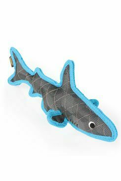 Moderní, odolná textilní hračka ve tvaru žraloka - přetahovadlo s texturovaným povrchem.
