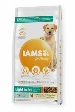 Krmivo IAMS for Vitality s nízkým obsahem tuku pro dospělé psy a psí seniory všech plemen je 100% kompletní a vyvážené, odborníky sestavené krmivo, které bude vašemu zvířeti chutnat a svědčit. Nová a vylepšená receptura s čerstvým kuřecím masem je založena na pečlivě vybraných, kvalitních živočišných bílkovinách, které podporují sedm znaků zdravé vitality psa. Aby byl váš pes zdravý, aktivní a plný energie, obsahuje receptura až 69 % živočišných bílkovin (z celkového obsahu bílkovin). Naše receptura s nízkým obsahem tuku a pro kastrovaná zvířata skvěle pomáhá regulovat hmotnost psa.