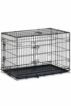 Drátěná klec v černé barvě se dvěma vchody.