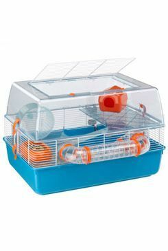 Prostorná a komfortní plastová klec pro křečky s kovovou mřížkou ve středové části, pro správnou cirkulaci vzduchu.