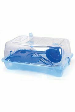 Plastový box pro drobné hlodavce (křečky, myši, potkany atd.) a drobné terarijní živočichy s vybavením.