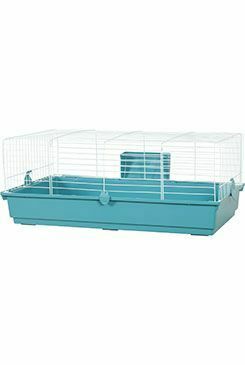 Klec pro morčata a trpaslíčí králíky má velká přední dvířka a vnější jesličky na seno.