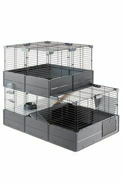 Dvoupatrová modulární klec pro králíky a morčata, vhodná pro ubytování více zvířat pohromadě.