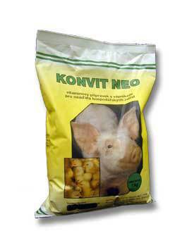 KONVIT NEO je vitamínová přísada do krmiva,určená především pro selata a mláďata drobných domácích zvířat. Pravidelná preventivní aplikace podporuje růst, tělesnou kondici, užitkovost, odolnost proti chorobám různého druhu, zejména přeměny látkové a chorobám odchovu.