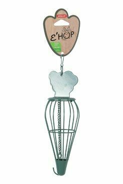 Závěsné kovové jesličky na seno ve tvaru mrkve.
