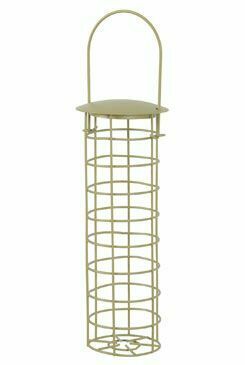 Závěsné kovové krmítko se stříškou, na lojové koule.