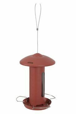 Venkovní krmítko ve tvaru sila se stříškou. Pevné kovové poutko na zvešení. Vhodné na mix semen.