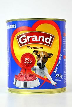 Konzerva GRAND konz. pes hovězí je kompletní krmivo pro psy,