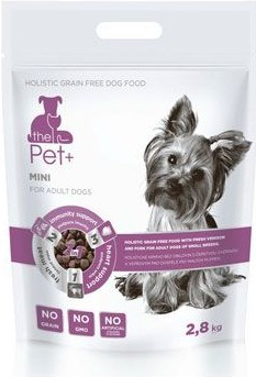 Holistické krmivo bez obilovin se zvěřinou a vepřovým pro dospělé psy malých plemen.
