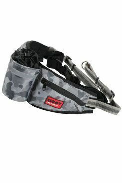Ledvinka z textilního nepromokavého materiálu, dvě boční kapsy a kapsa na lahev. Reflexní proužek. Nastavitelný a pružný opasek. Dva popruhy s očkem k připojení vodítka pomocí karabinky.