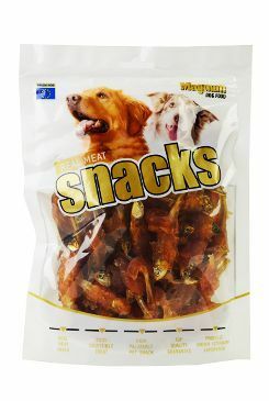 Sušená rybka omotaná proužkem kuřecí svaloviny.